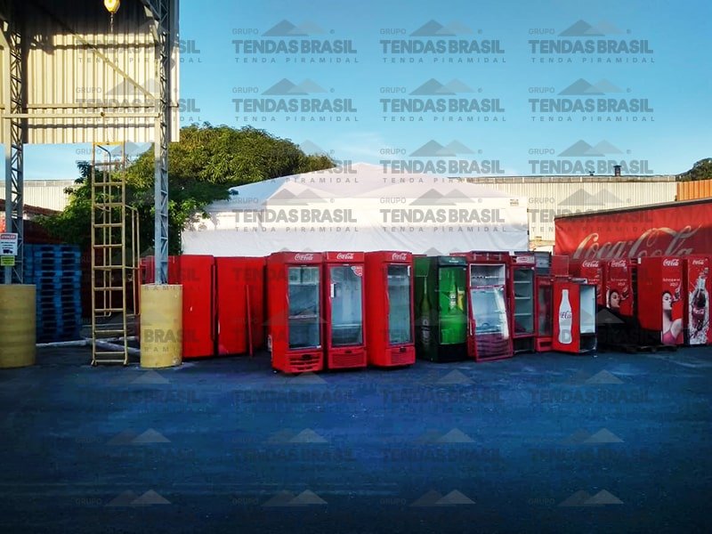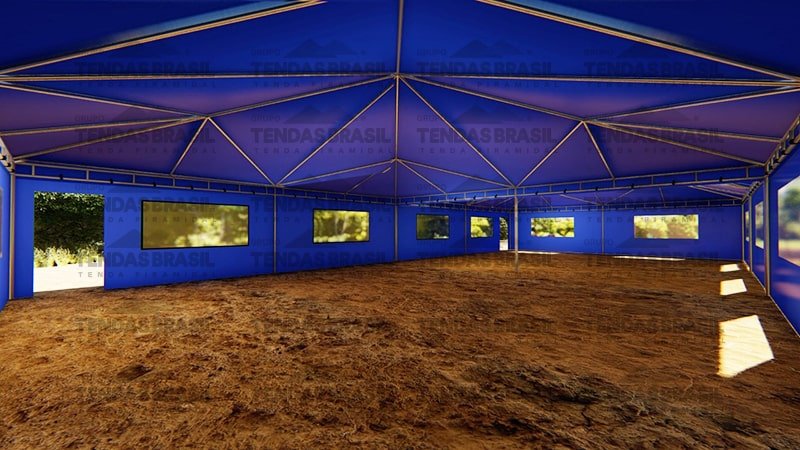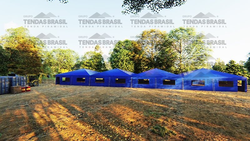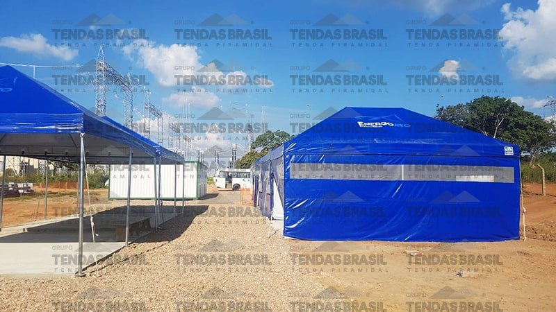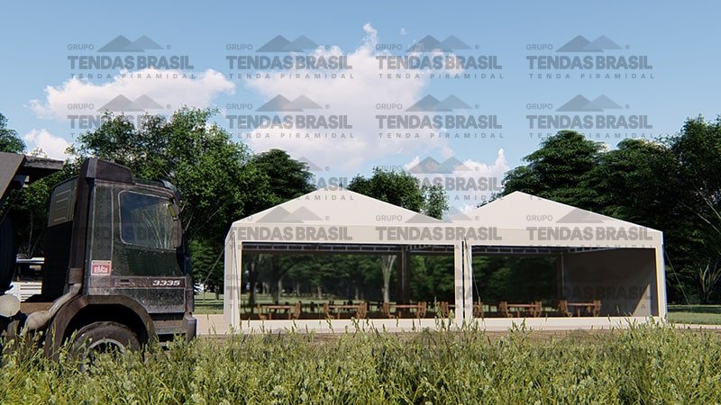 Além disso, a empresa fabrica modelos específicos para diferentes finalidades — como tendas calhadas (treliçadas), que são mais robustas para suportar condições mais exigentes.