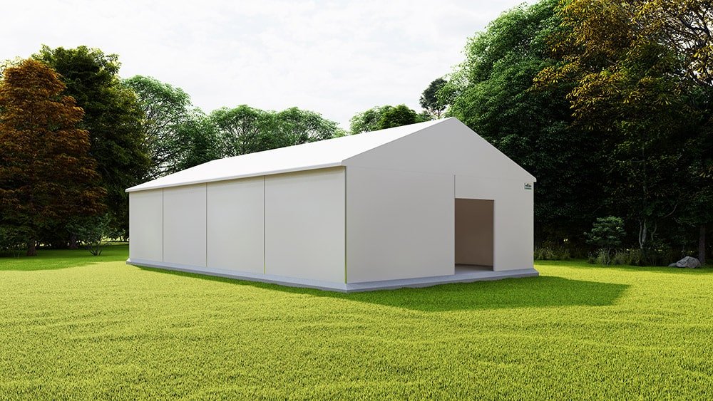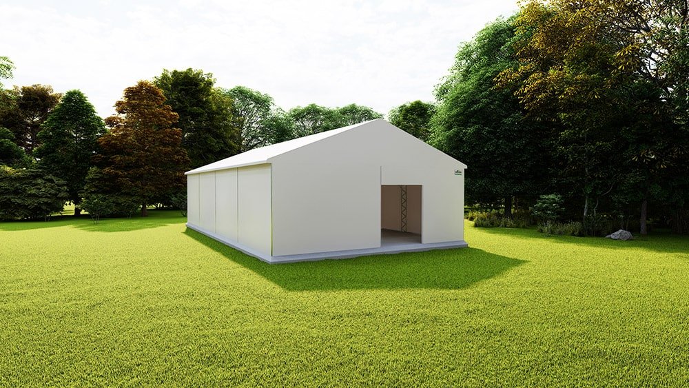 Suas características envolvem um vão livre que pode chegar até 40 m; A estrutura, GALVANIZADA A FOGO; A lona é especial para galpão com vida útil de até 15 anos, de acordo com o produto armazenado; as colunas com base articulável são reforçadas com cabo de aço para contraventamento da estrutura, fixadas com presilhas de aço e perfis de alumínio para fixação das lonas.